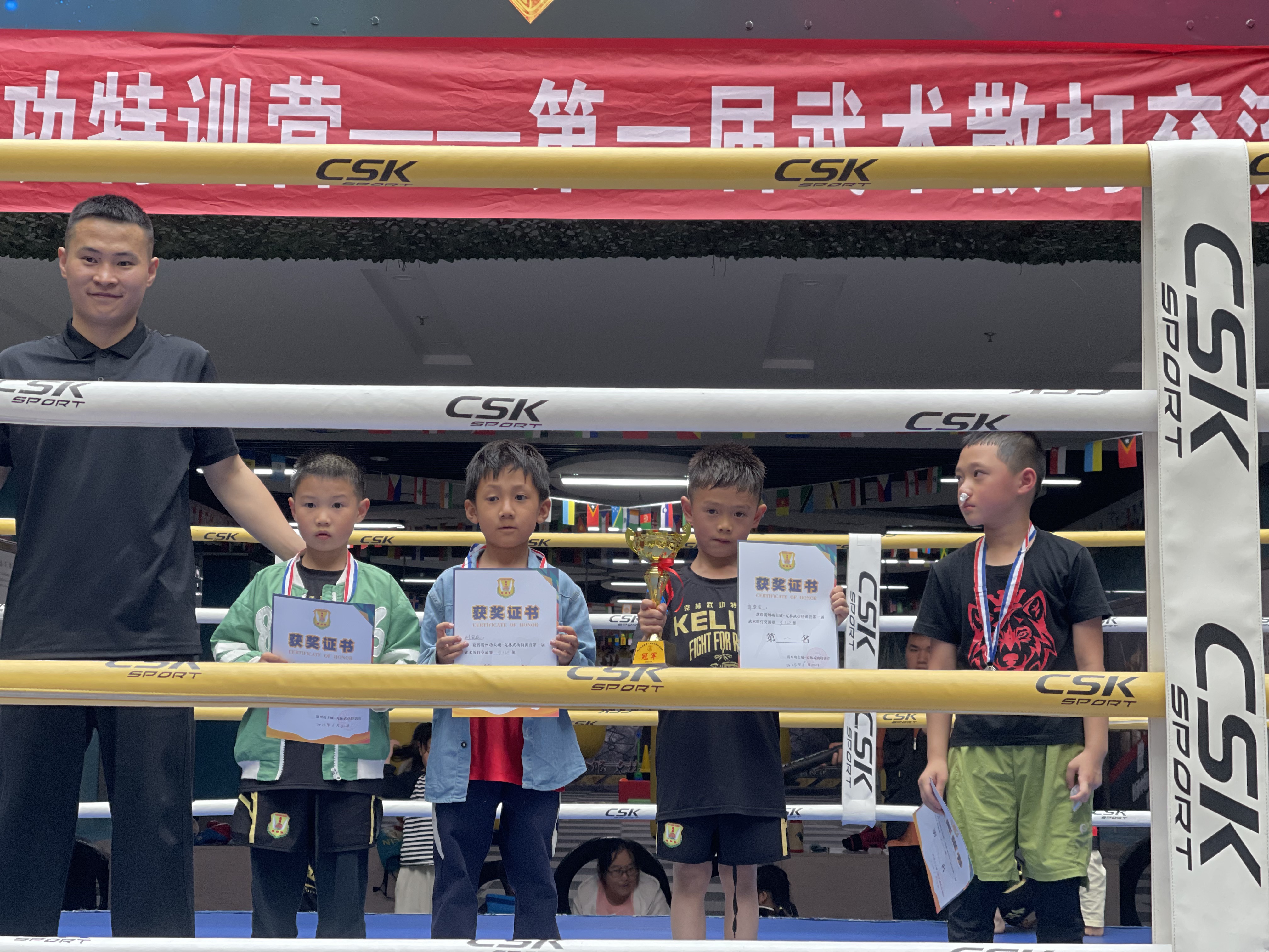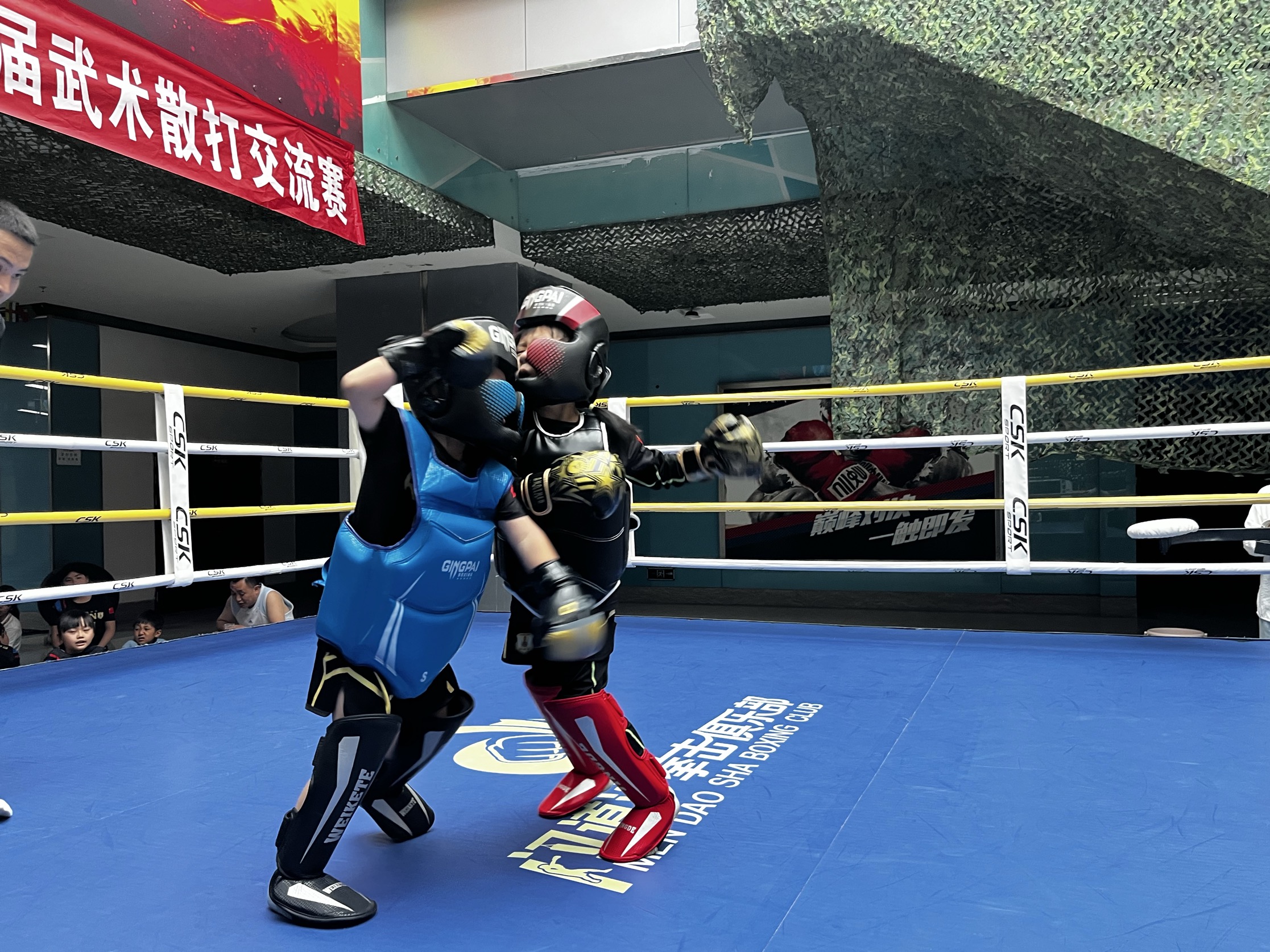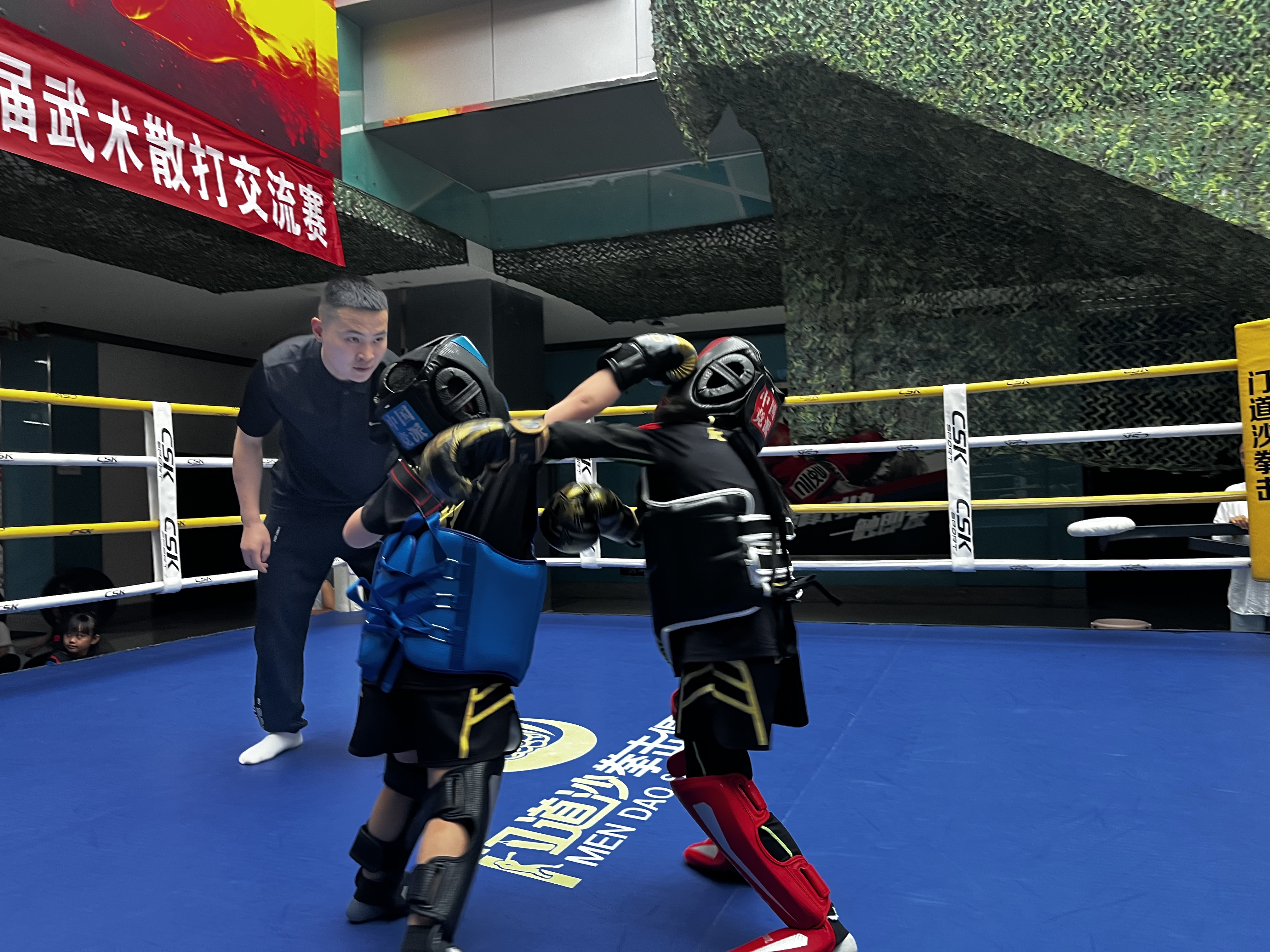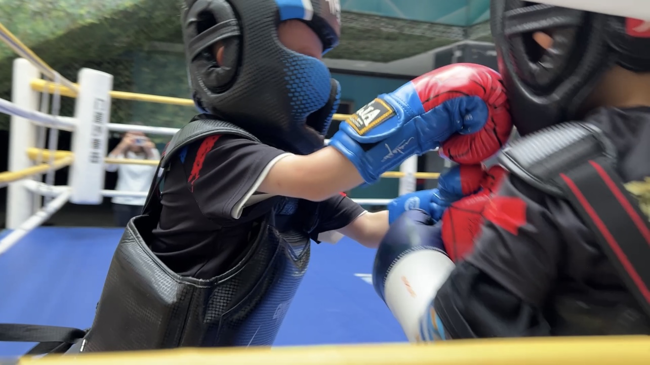 擂台上,年龄最小的选手仅4岁半,却以灵巧步法闪避重拳;青少年组选手身手敏捷,一记干脆的后摆踢引发惊呼……