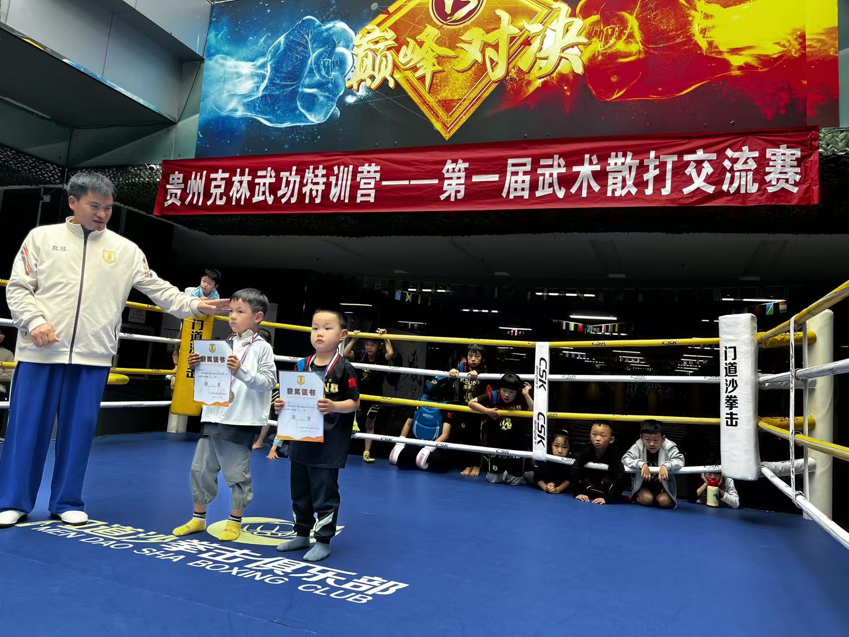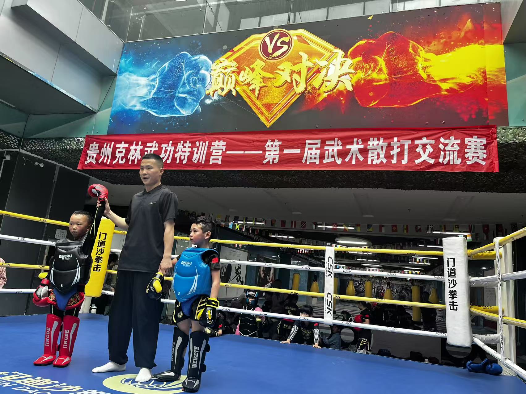 2025年6月21日,贵州功夫城内——克林武功特训营第一届武术散打交流赛燃情开战!数位少年武者以拳会友,在汗水中淬炼意志,在对抗中诠释武德。下午3时许,赛事圆满收官,但沸腾的热血与闪耀的瞬间,已成永恒印记!