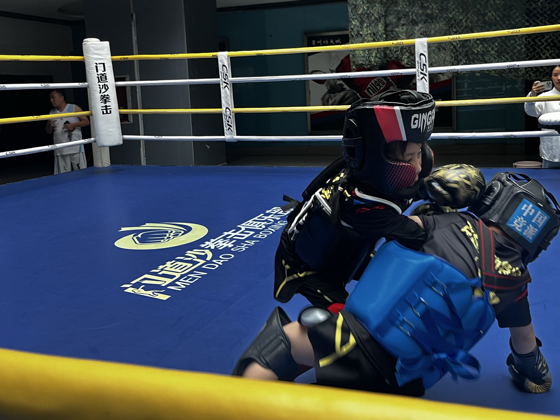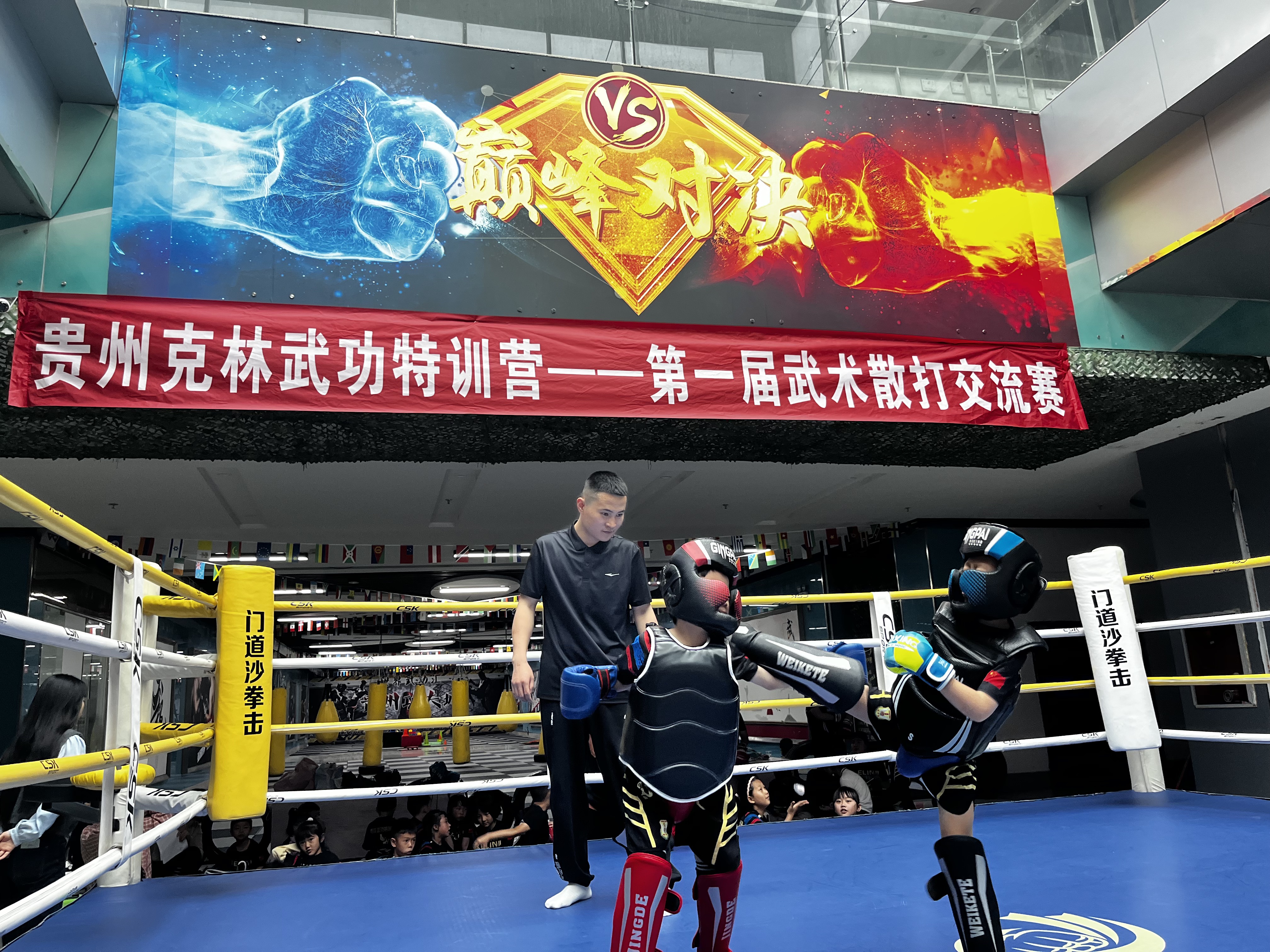 擂台上,年龄最小的选手仅4岁半,却以灵巧步法闪避重拳;青少年组选手身手敏捷,一记干脆的后摆踢引发惊呼……