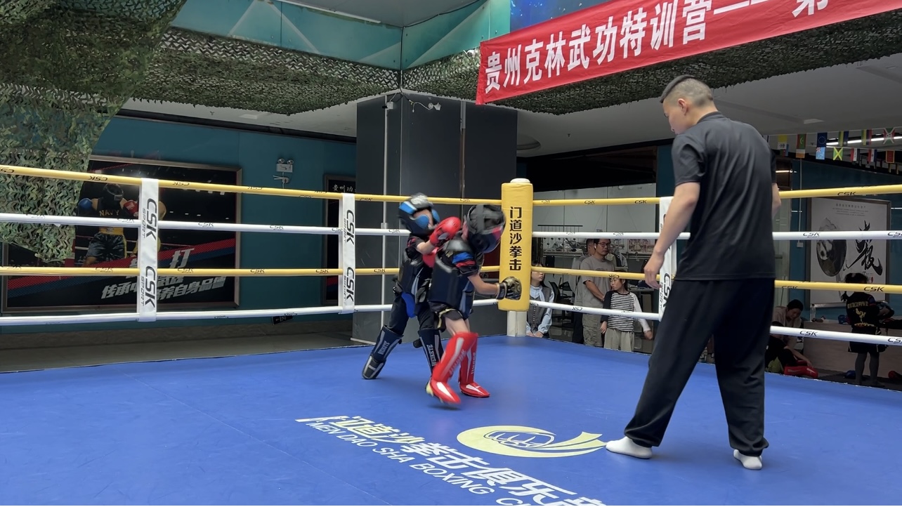 2025年6月21日,贵州功夫城内——克林武功特训营第一届武术散打交流赛燃情开战!数位少年武者以拳会友,在汗水中淬炼意志,在对抗中诠释武德。下午3时许,赛事圆满收官,但沸腾的热血与闪耀的瞬间,已成永恒印记!